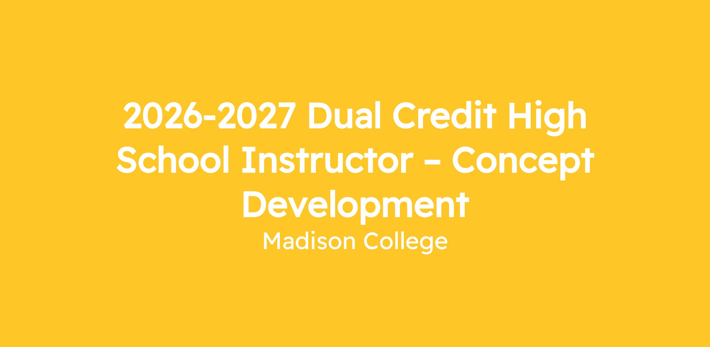 Madison College is recruiting a pool of qualified licensed current high school teachers, who meet the Higher Learning Commission and College requirements, to teach the dual credit/concurrent enrollment courses in their high school. (High School must be in the WTCS-defined Madison College district). Applications are accepted on a continuous basis with first review in November for classes beginning the subsequent fall semester. This position will close for submission on April 5, 2026.