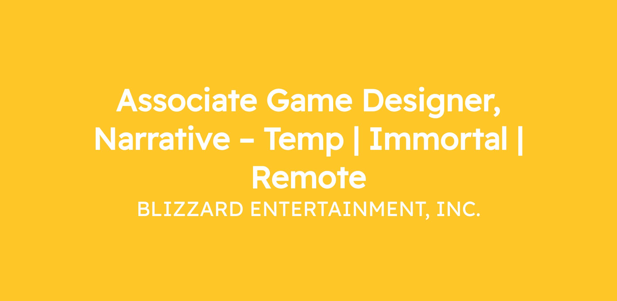 We are committed to working with and providing reasonable assistance to individuals with physical and mental disabilities. If you are a disabled individual requiring an accommodation to apply for an open position, please email your request to accommodationrequests@activisionblizzard.com. General employment questions cannot be accepted or processed here. Thank you for your interest.