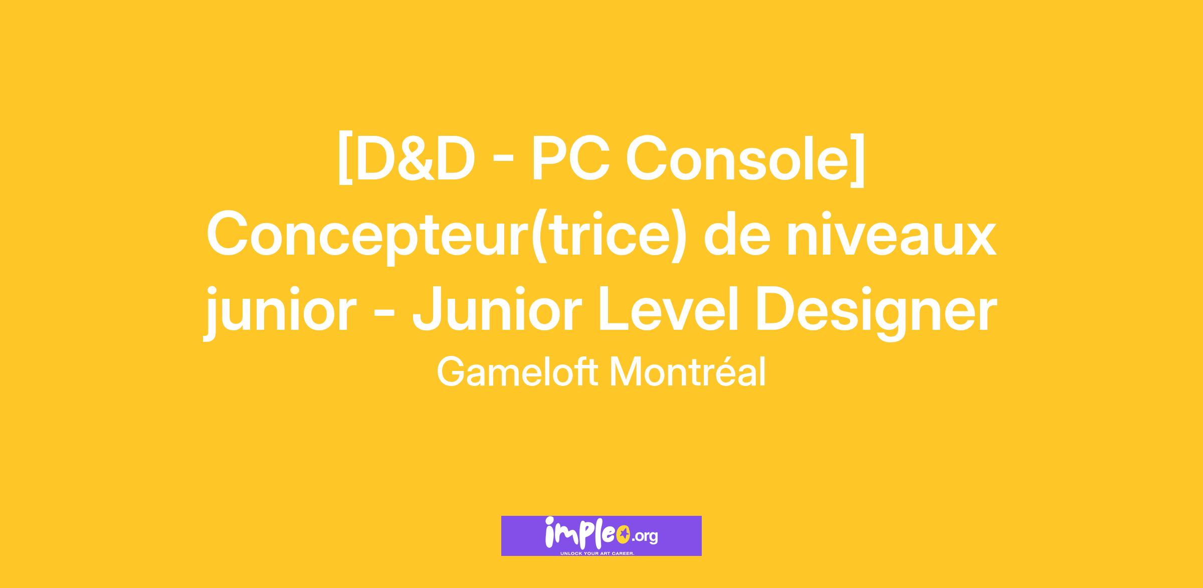 - Au moins un titre publié sur console/PC dans un rôle de conception de niveaux