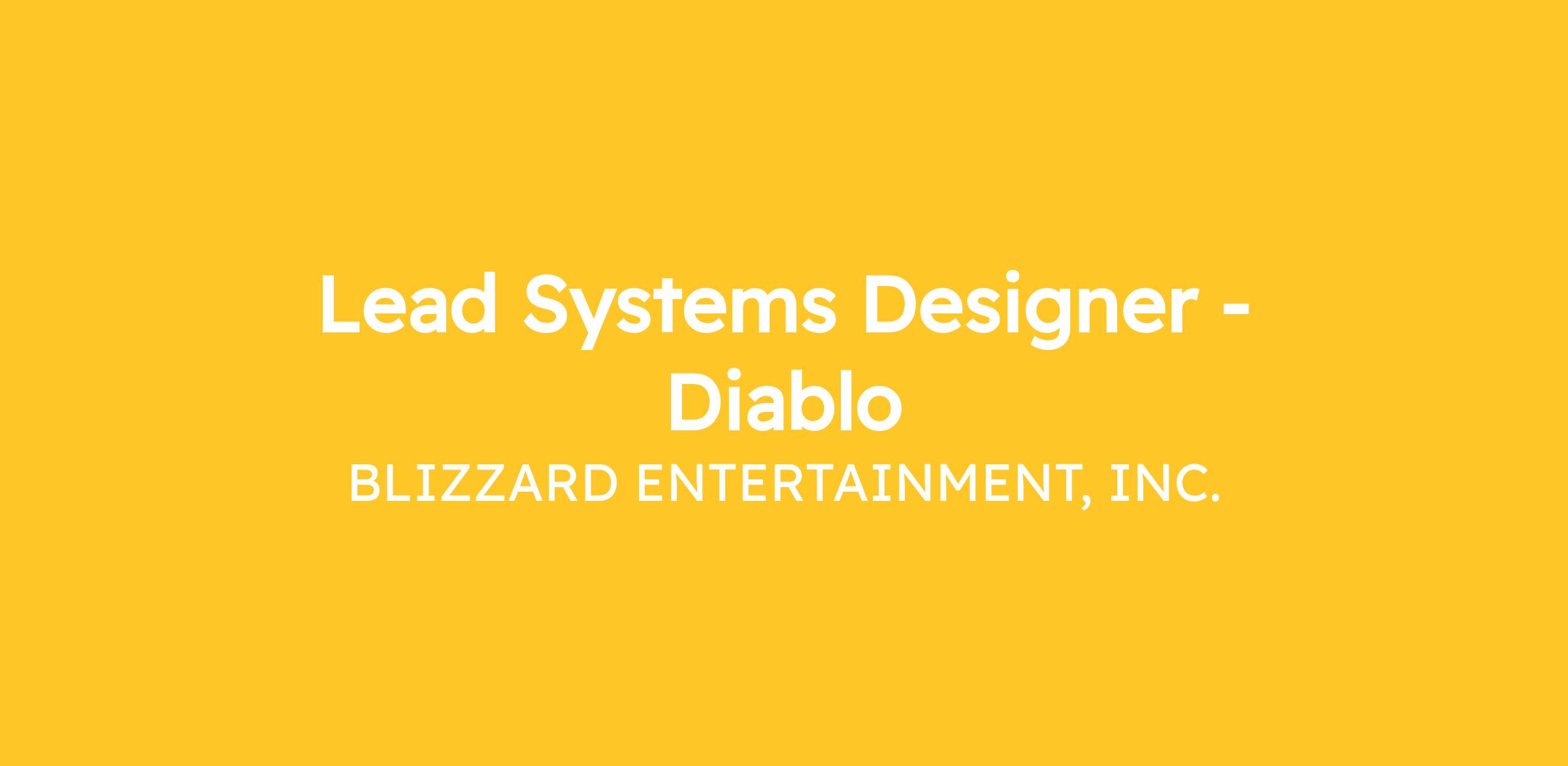We are seeking a Lead Systems Designer to assist in the creation of new ARPG experiences within one of Blizzard’s most iconic worlds, Diablo. In this role, you will lead a team of designers responsible for the design, implementation, and ongoing evolution of core game systems, player progression, itemization, and rewards. The ideal candidate brings deep systems design expertise, strong leadership and communication skills, a sharp analytical mindset, and a passion for crafting compelling progression-driven player experiences in live-service games.