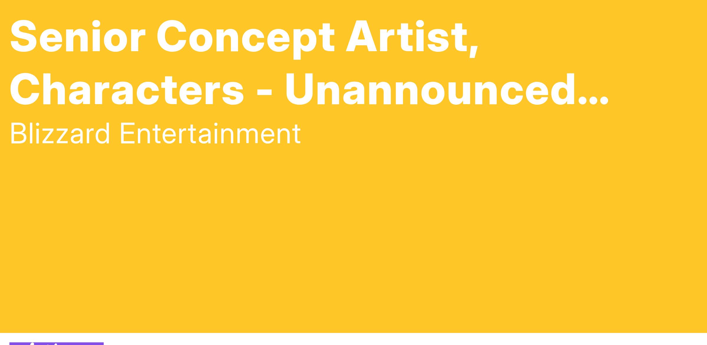 Unannounced ProjectAt Blizzard, we craft genre-defining games and legendary worlds for all to share. Through unparalleled creativity and storytelling, we create immersive universes and iconic characters that are beloved across platforms, borders, backgrounds, and generations - only made possible by building a work environment that nurtures the artistry of game development and unleashes the aspirations of our people.