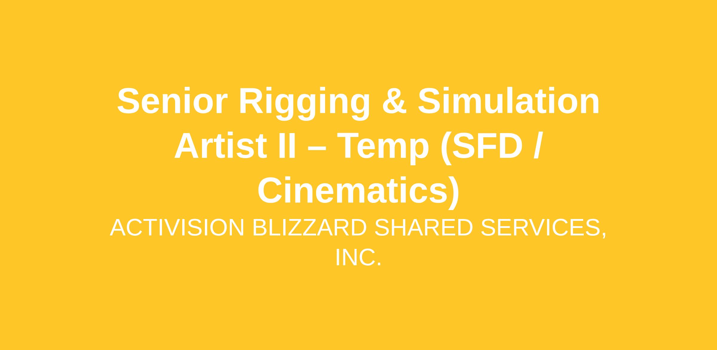 CinematicsBlizzard Entertainment’s Animation team is looking for a motivated and experienced senior character technical artist to join its award-winning cinematics department.