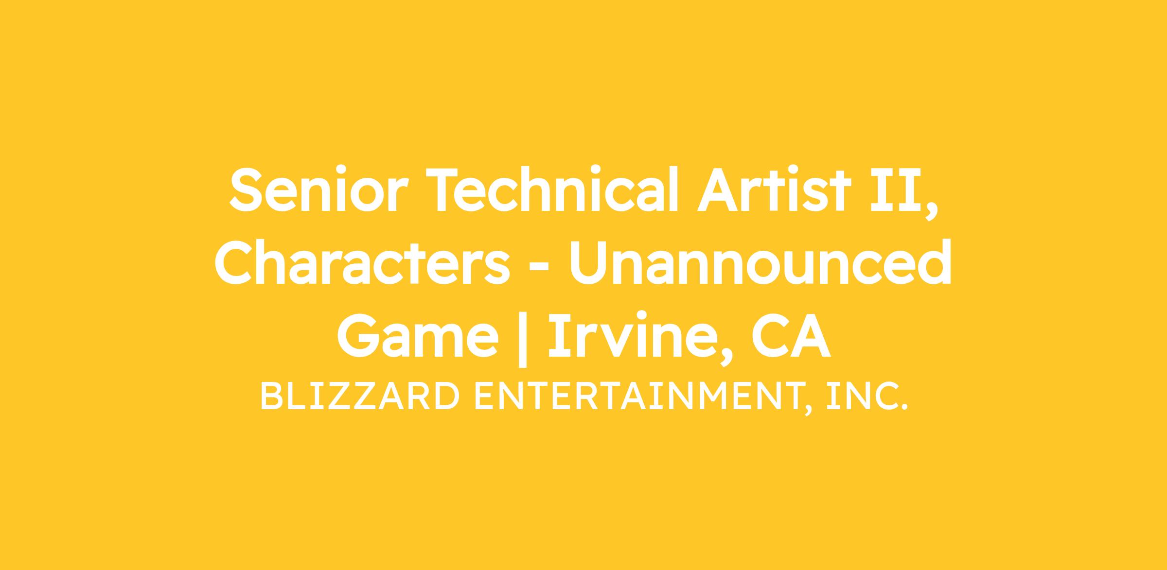 We are looking for a Senior Technical Artist, Characters to help craft a new, unannounced game for Blizzard. As a senior individual contributor on the team, you will play a critical role in defining, building, and maintaining high‑quality character rigging pipelines while ensuring runtime performance and scalability. You will partner closely with animation, character art, and engineering teams to deliver best‑in‑class character solutions and act as a technical leader within the character discipline.