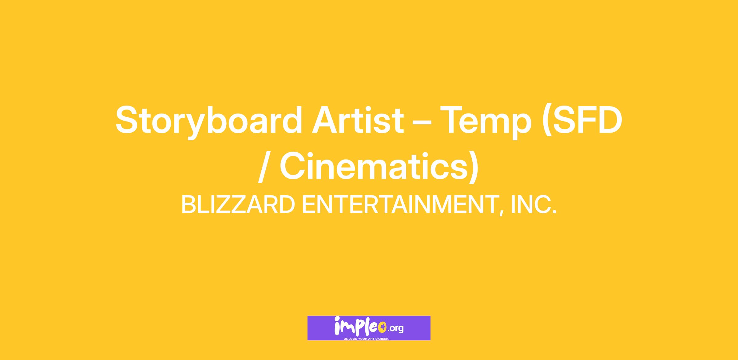Creative DevelopmentBlizzard Entertainment is looking to hire a Storyboard Artist to join our ranks! Our ideal candidate would be an outstanding draftsperson who is a storyteller at heart whose skills veer towards action-adventure and drama in conjunction with having a firm grasp of dynamic staging, filmmaking fundamentals, and character acting - a team player who enjoys working in a fun, fast-paced environment. Are you the hero we're looking for?